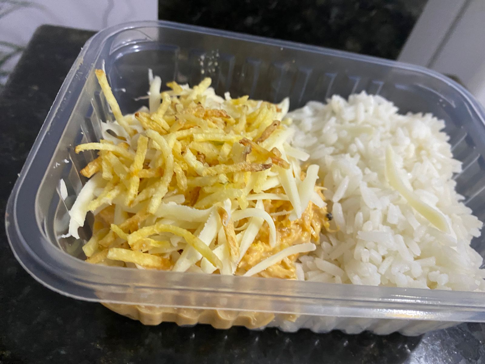 Arroz: Carboidrato: 140gr: Fricassê: Proteínas: 130gr: Queijo: Laticínio 30gr: